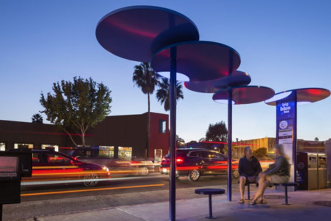 圣莫妮卡漫長而漫長的海岸線不僅賦予了城市陽光沙灘,也賦予了城市熱情奔放的城市氣息和天馬行空的想象。市民不喜歡半封閉的公交站臺(tái),所以很多人都會(huì)看到一個(gè)開放式站臺(tái)設(shè)計(jì),和這里的居民一樣熱情奔放。