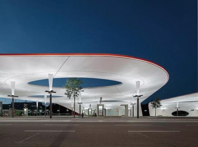 這座看起來(lái)像是蘑菇云般設(shè)計(jì)的站臺(tái)候車亭,給人一種現(xiàn)代都市的時(shí)尚感覺(jué),而輕巧的頂棚則用黑色的曲線來(lái)勾勒出不規(guī)則的區(qū)域,突出動(dòng)態(tài)的美感。