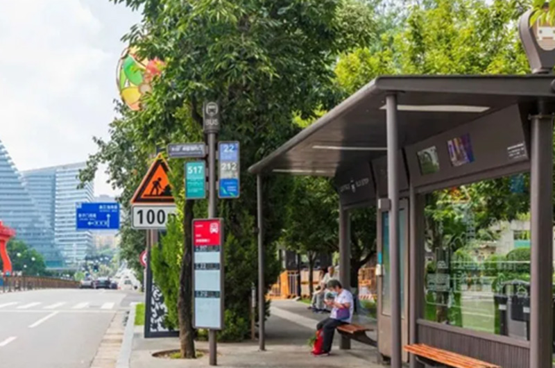 候車(chē)亭上方較高位置,設(shè)有公交線路牌,方便市民和游客在遠(yuǎn)處辨認(rèn),電子公交站牌在字體、顏色上都經(jīng)過(guò)優(yōu)化,讓各個(gè)年齡段都能輕松閱讀。